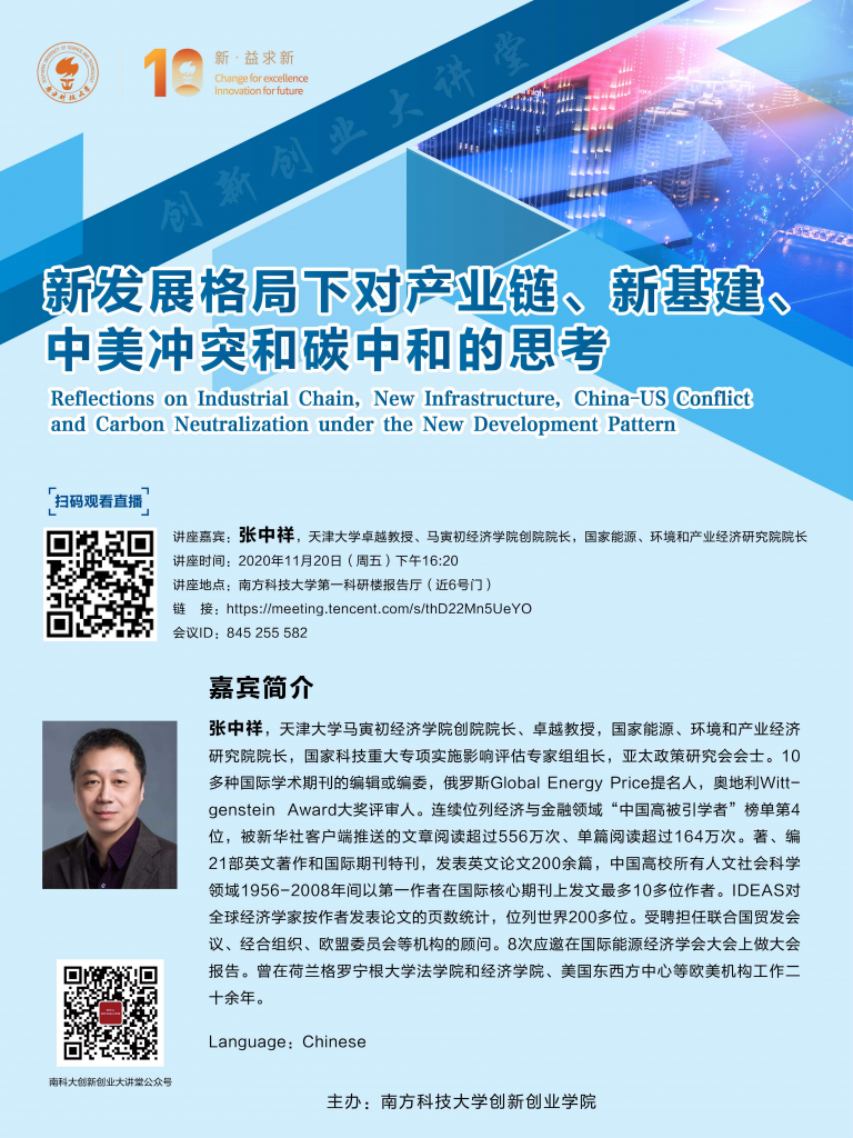 南方科技大学新闻网 | 张中祥:新发展格局下对产业链、新基建、中美冲突和碳中和的思考