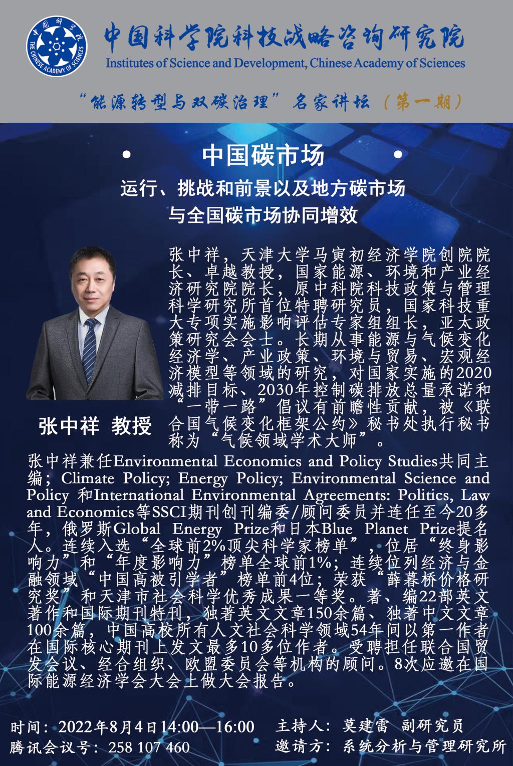中科院战略院“能源转型与双碳治理”名家讲坛第一期