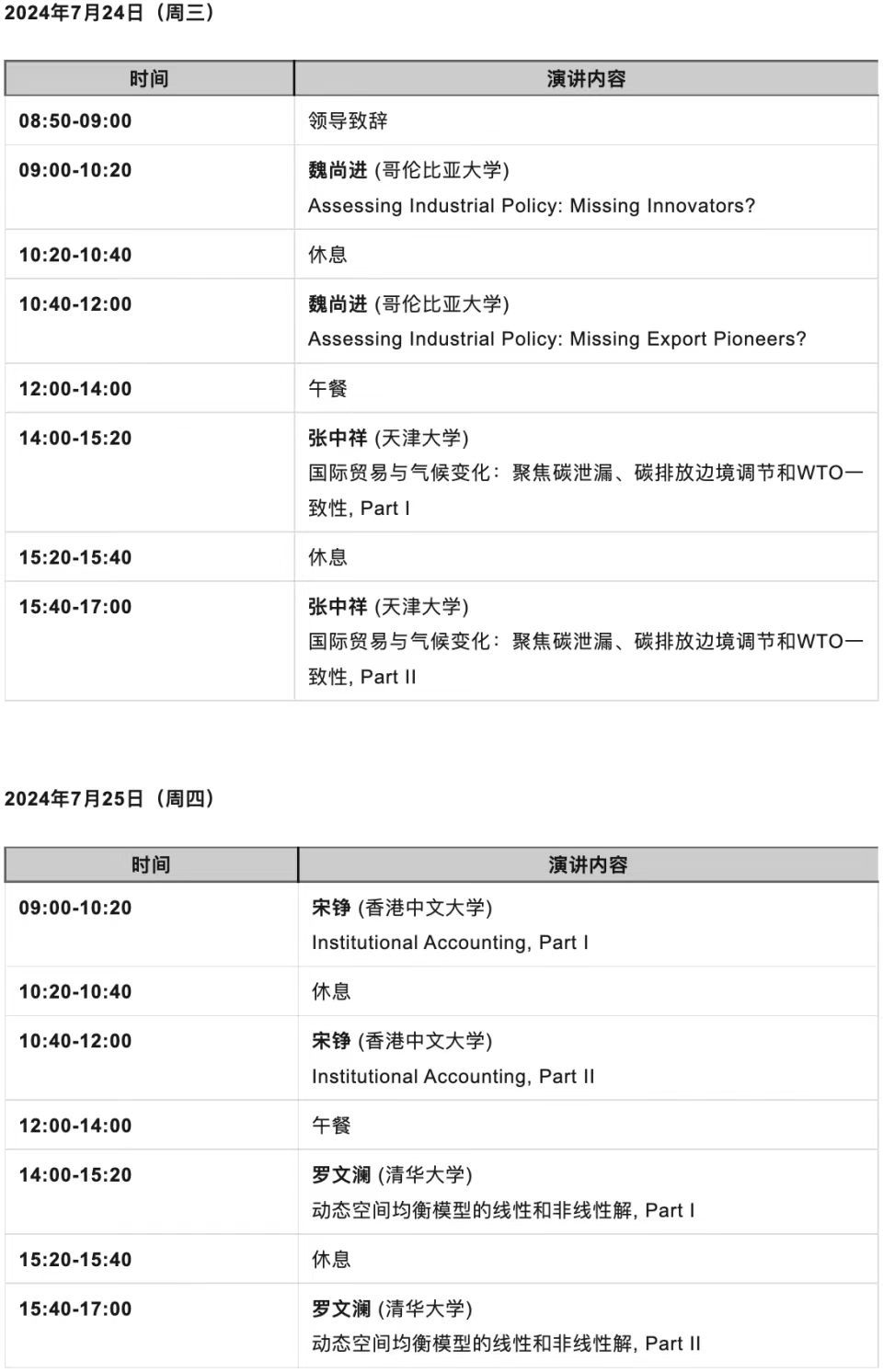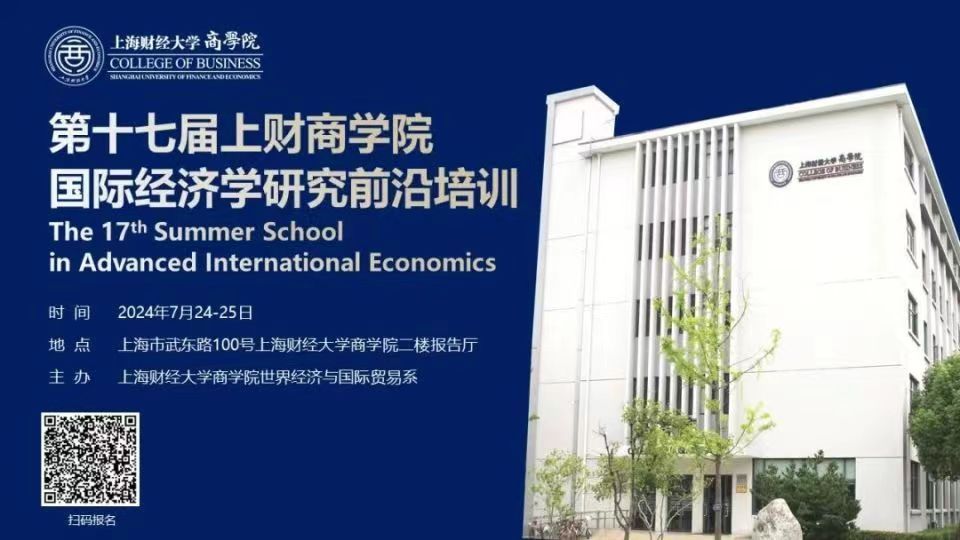 为了推动国际贸易、世界经济领域科研人才的培养,上海财经大学商学院自2008年起,每年组织“国际经济学研究前沿培训”暑期项目,邀请来自哈佛大学、耶鲁大学、牛津大学、麻省理工大学、哥伦比亚大学等国际顶尖院校和科研机构的学者作为培训教师介绍本学科相关领域的前沿研究。该项目致力于国际经济学师资水平的提高和高端人才的培养,推动国际学术交流。2024年7月24-25日,上海财经大学商学院将举行第十七届上财商学院国际经济学研究前沿培训,具体安排如下:
