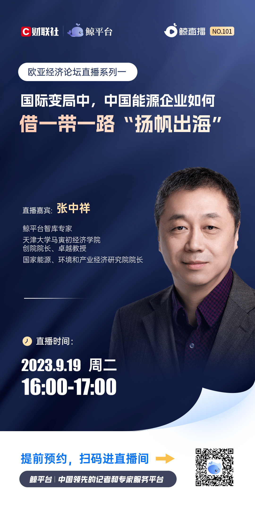金秋九月,共赢未来。鲸平台聚焦“一带一路”建设和上合组织地区合作优先领域以及欧亚国家共同关注的热点问题,策划推出“欧亚经济论坛直播系列”,邀请行业领袖和专家学者深入探讨经贸、金融、科技、生态、地学、文化领域的智慧合作与共赢之道,敬请持续关注!