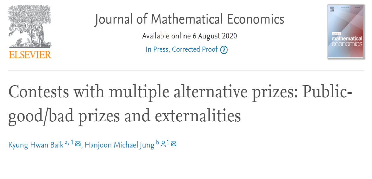 Kyung Hwan Baik,韩国成均馆大学经济系教授。Hanjoon Jung,美国宾夕法尼亚州立大学经济学博士,马寅初经济学院副教授。主要研究方向为微观经济学理论、博弈论、产业组织和新政治经济学,发表的文章被诺贝尔经济学奖得主Roger Myerson教授多次引用。